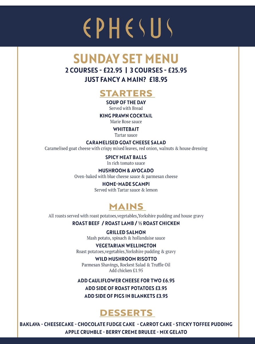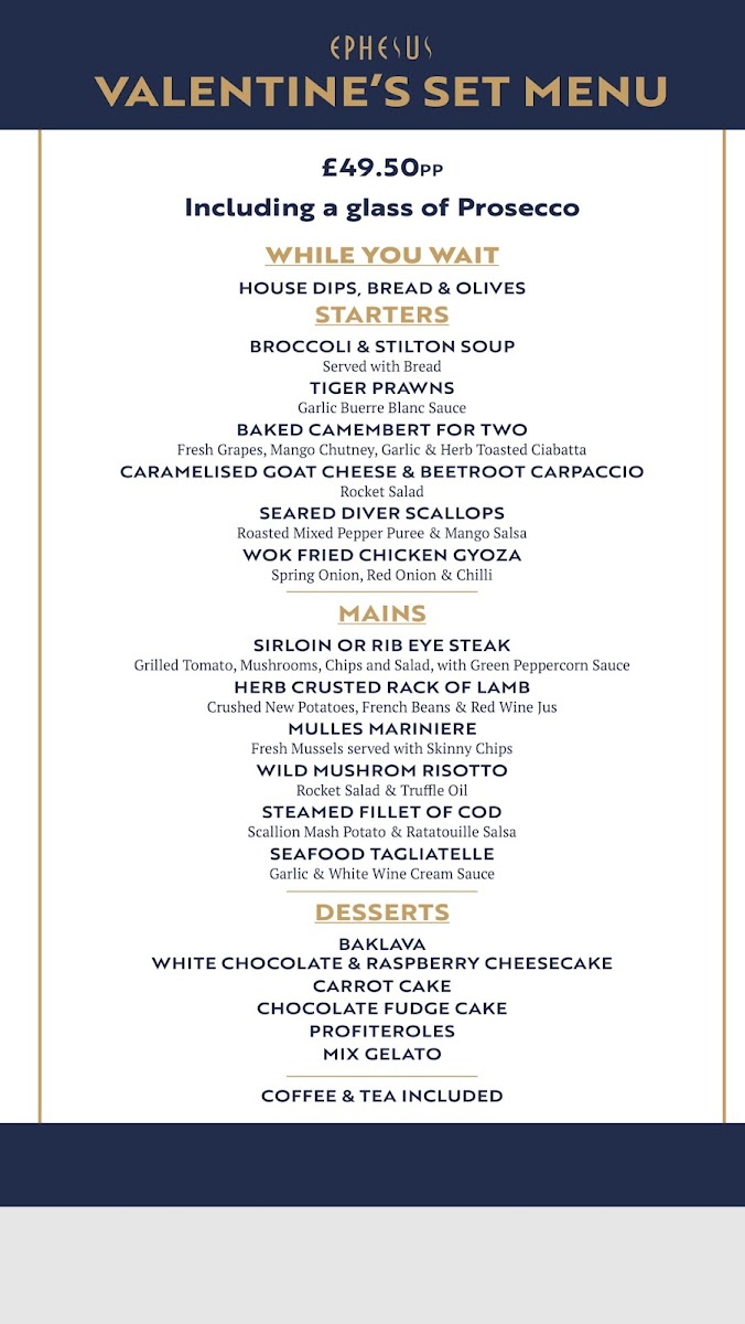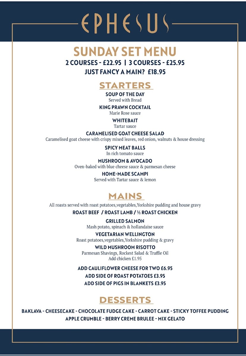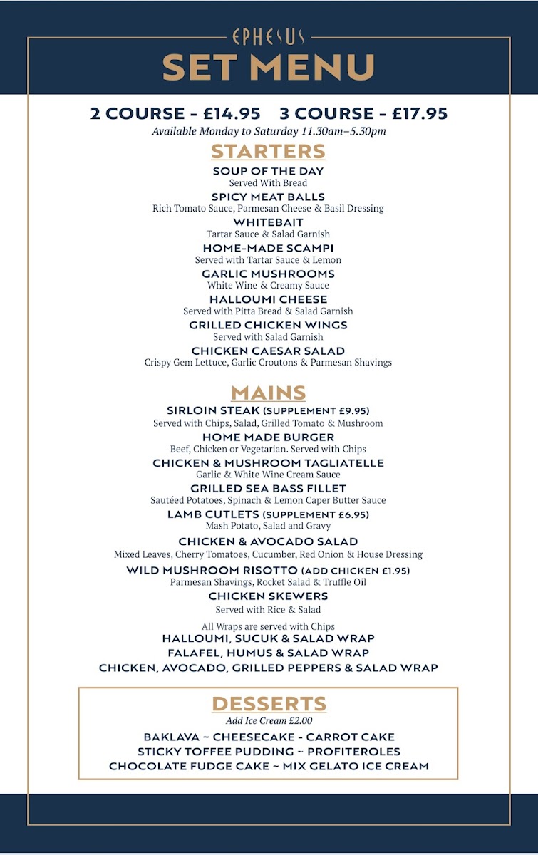 While reservations are recommended for weekends due to its popularity, especially among local families and groups, walk-ins are often accommodated on quieter evenings. In short, the Ephesus Lounge & Meze Bar Menu delivers both substance and style, making it a standout destination for Mediterranean dining in Sittingbourne.